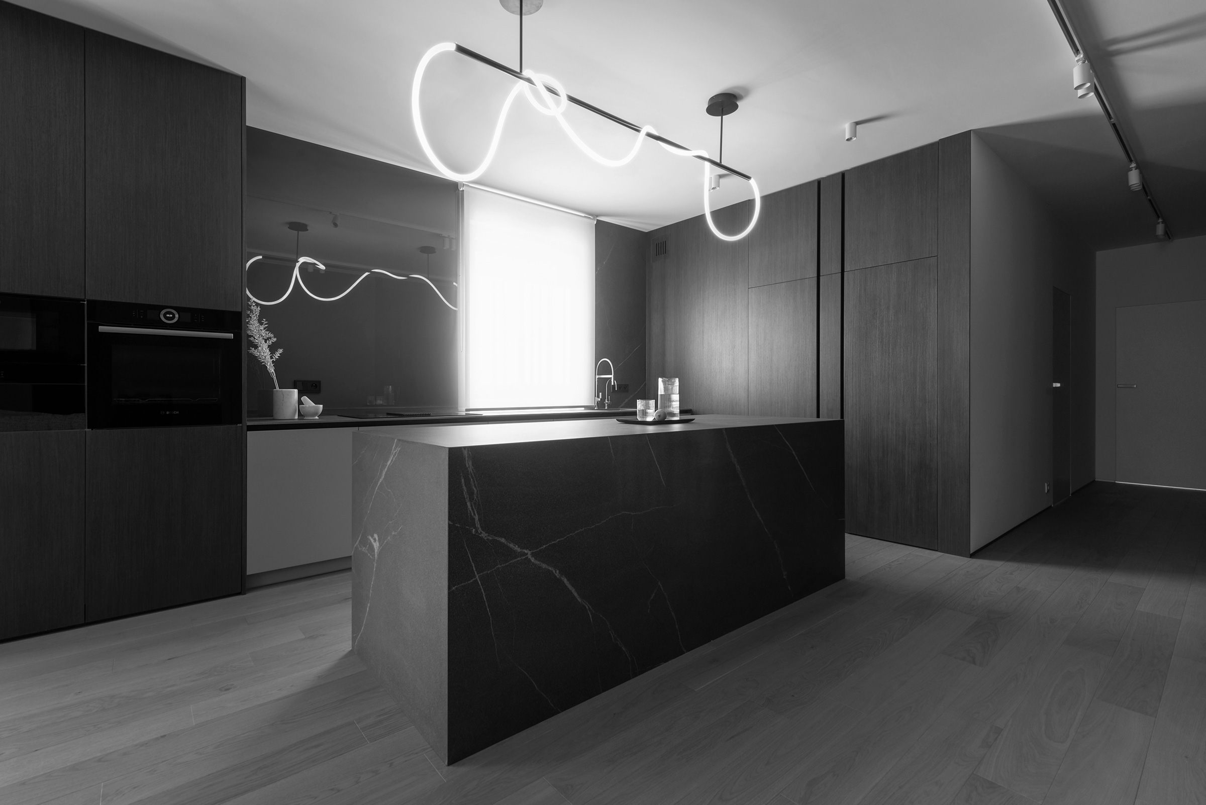 and the primary dark shadows of the walls, which form the basis of the entire apartment.